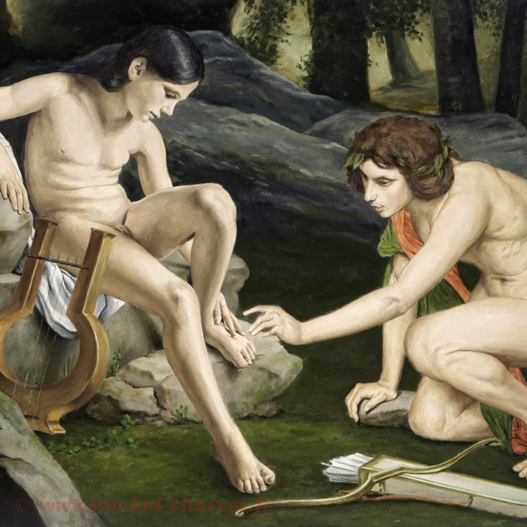 Un beau matin, profitant de l’absence d’Adam parti chercher le pain quotidien, Eve, comme à l’accoutumée, se prélassait au pied du pommier ; perdue dans ses pensées, elle ressentit soudain à ses pieds quelque chose qui la frôlait. Intriguée elle écarta les herbes et reconnut Fernand.